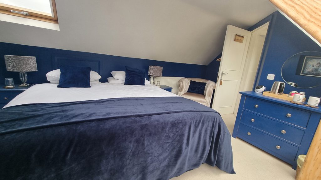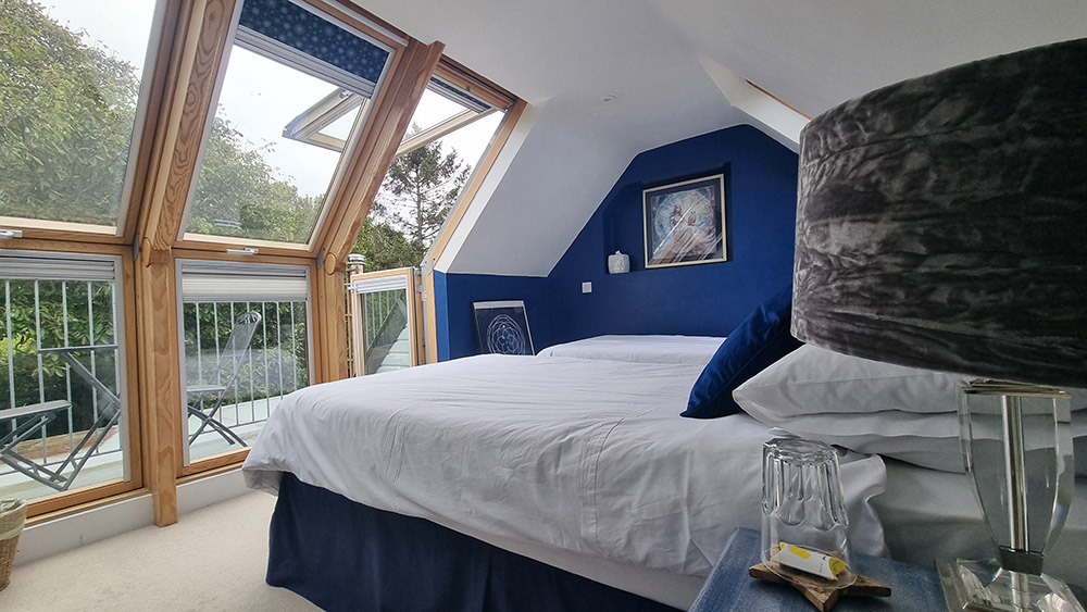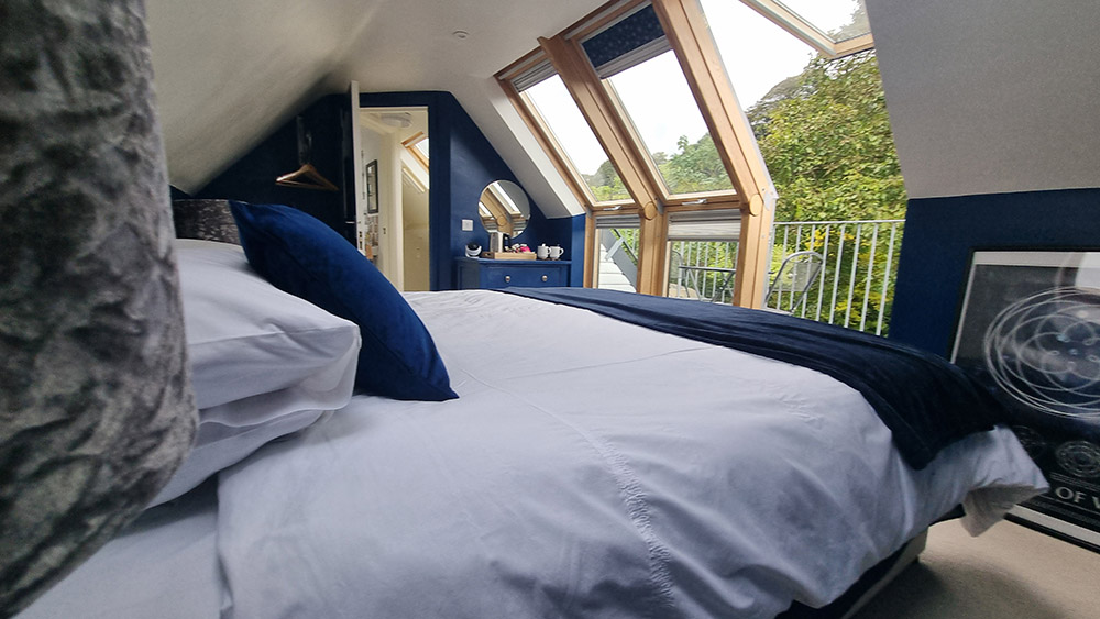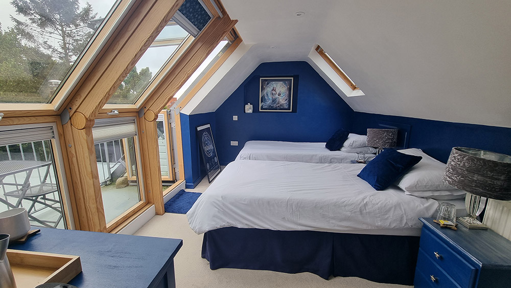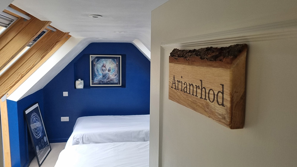 At the top of the house, this room is appropriately named after the Welsh goddess of the spiralling stars. Arianrhod (silver wheel) is the Welsh goddess of the moon, stars and sky, who in mythology also represents time, fate, fertility and rebirth, the constant cycle of the universe.